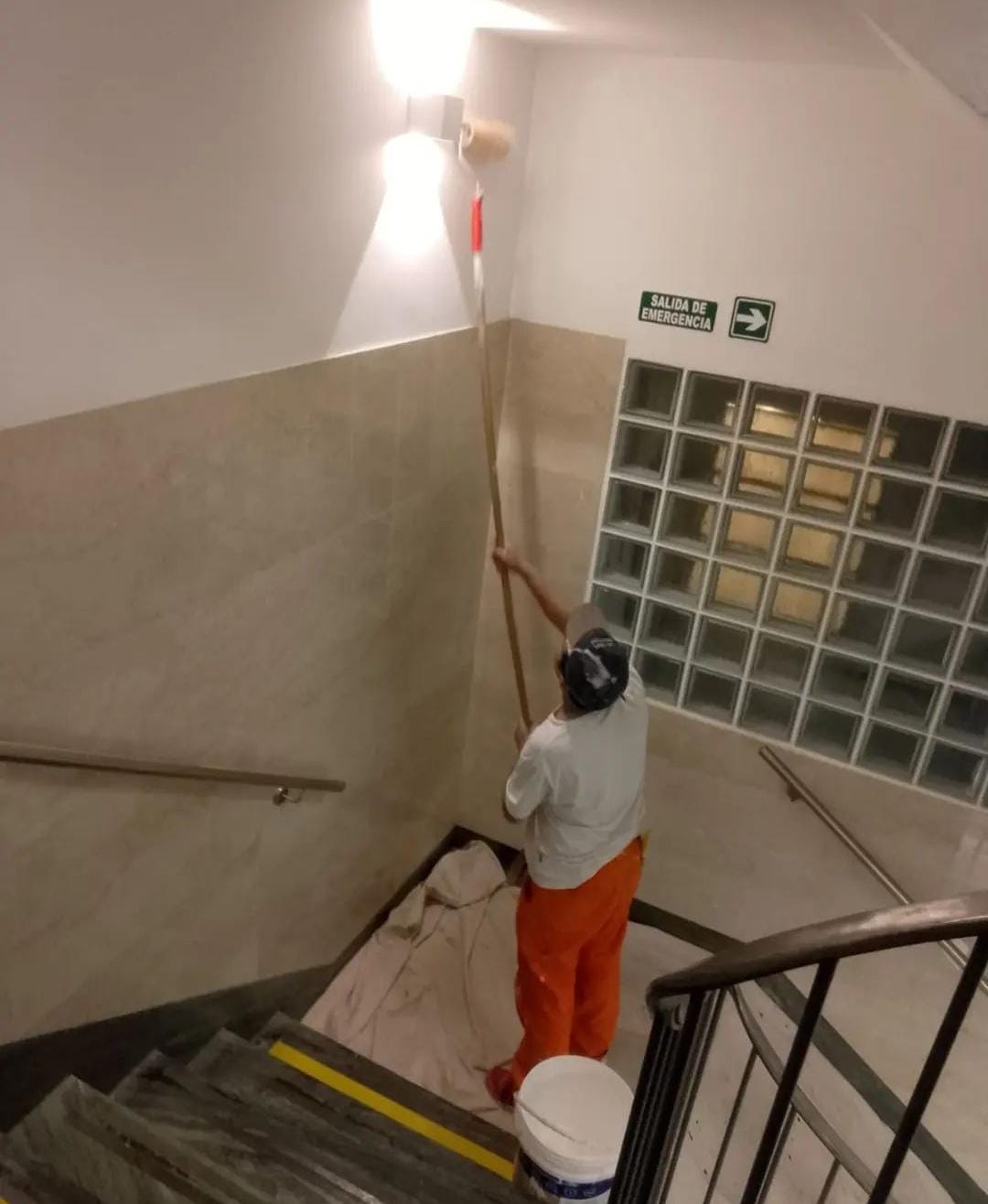 Trabajo de pintura general en el segundo cuerpo del edificio del Banco Credicoop